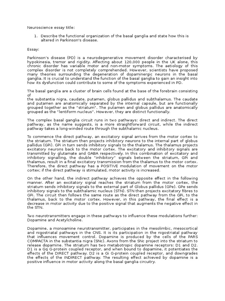 Back to articles Neuroscience Topics To Write About In Depth August 25, essay about the brain, Brainstorming and its health benefits to the human brain Understanding the role of the brain and its reception to emotions A case study of how different music tones are received in the brain A look into how PTSD is developed in the human brain The role of chronic fatigue and how it impacts the human brain Ways the brain struggles during traumatic experiences Does music affect the intellectual capacity of a student? A study of the brain capacity to function between children and teenagers The various causes of head injury and how they develop in the brain What is nerve stimulation and how is its function in the brain carried out?